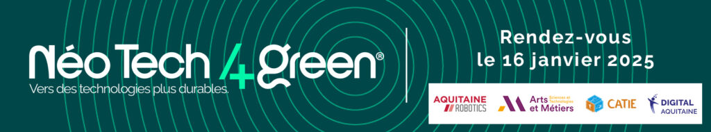 The 3rd edition of Néo Tech 4Green® , the flagship meeting for industry and responsible digital players, returns in 2025! This event, co-organized by Digital Aquitaine, Aquitaine Robotics, the Arts & Métiers campus and CATIE, stands out as a true catalyst for innovation and collaboration.