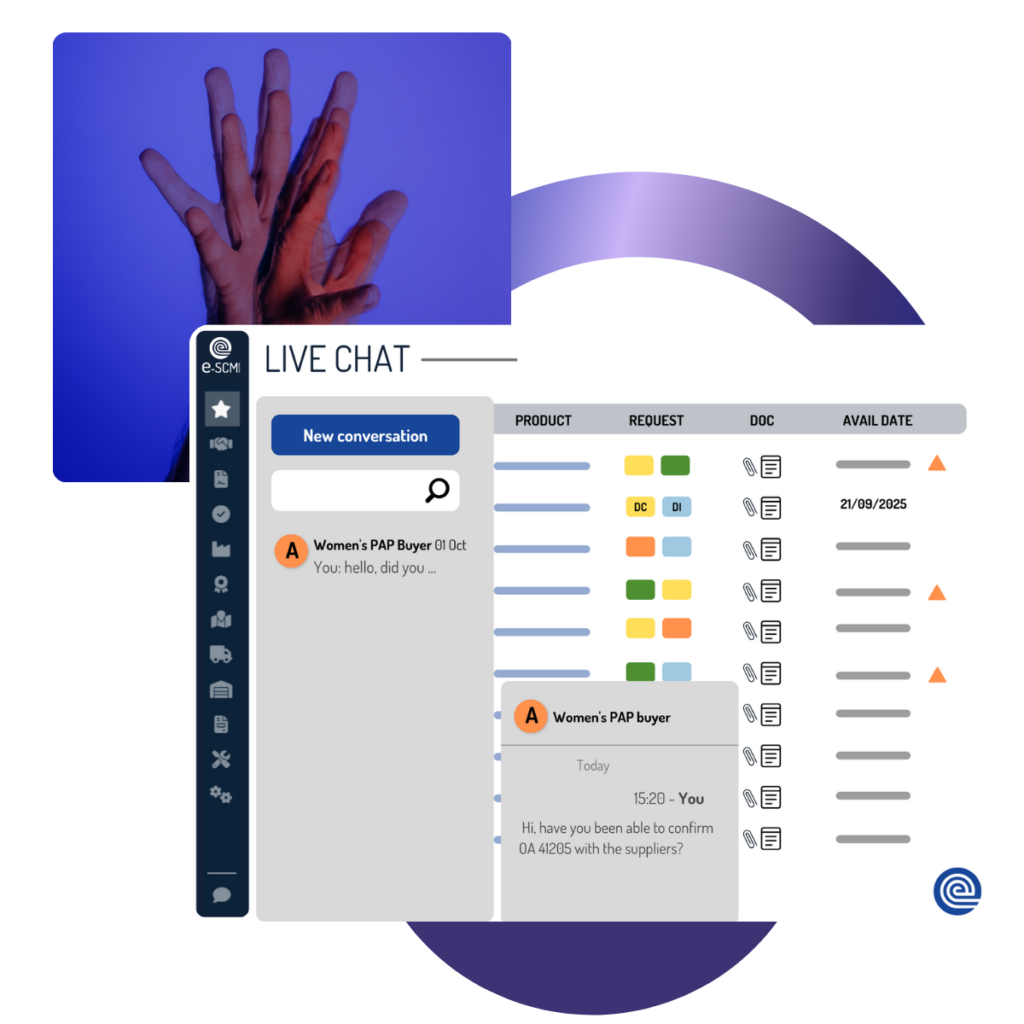 e-SCM is a collaborative platform dedicated to the management of upstream supply flows (purchasing, production, transport, traceability) specifically designed for companies in the textile, fashion and luxury sector.