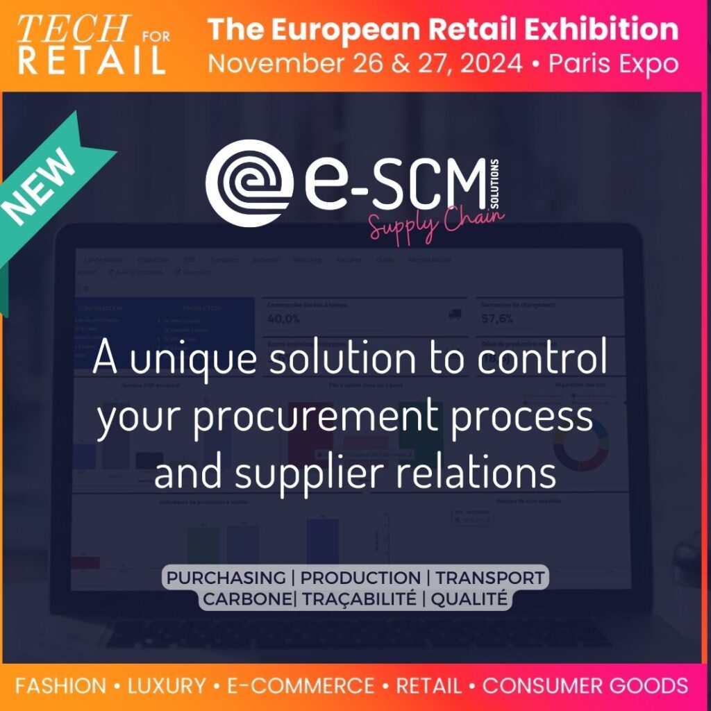 Unisciti a noi a Tech For Retail per scoprire come e-SCM può aiutarti a reinventare la tua supply chain per un futuro più efficiente e redditizio. Saremo presenti il 26 e 27 novembre alla fiera Porte de Versailles a Parigi, allo STAND B31.