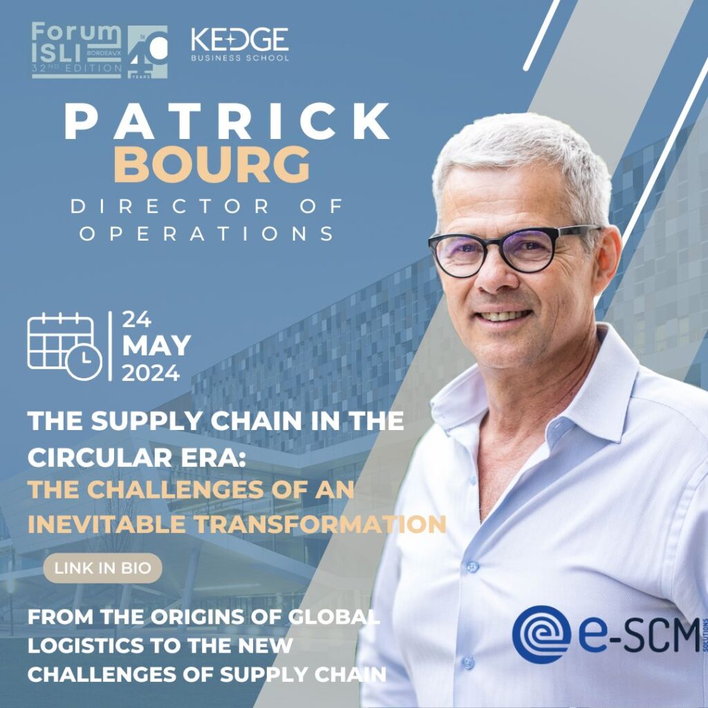 In qualità di partner fondatore di e-SCM Solution, sono lieto di condividere la nostra esperienza al forum ISLI della Kedge Business School e di partecipare alle riflessioni sulle sfide di un'inevitabile trasformazione verso una catena di fornitura più circolare . » Patrizio BOURG