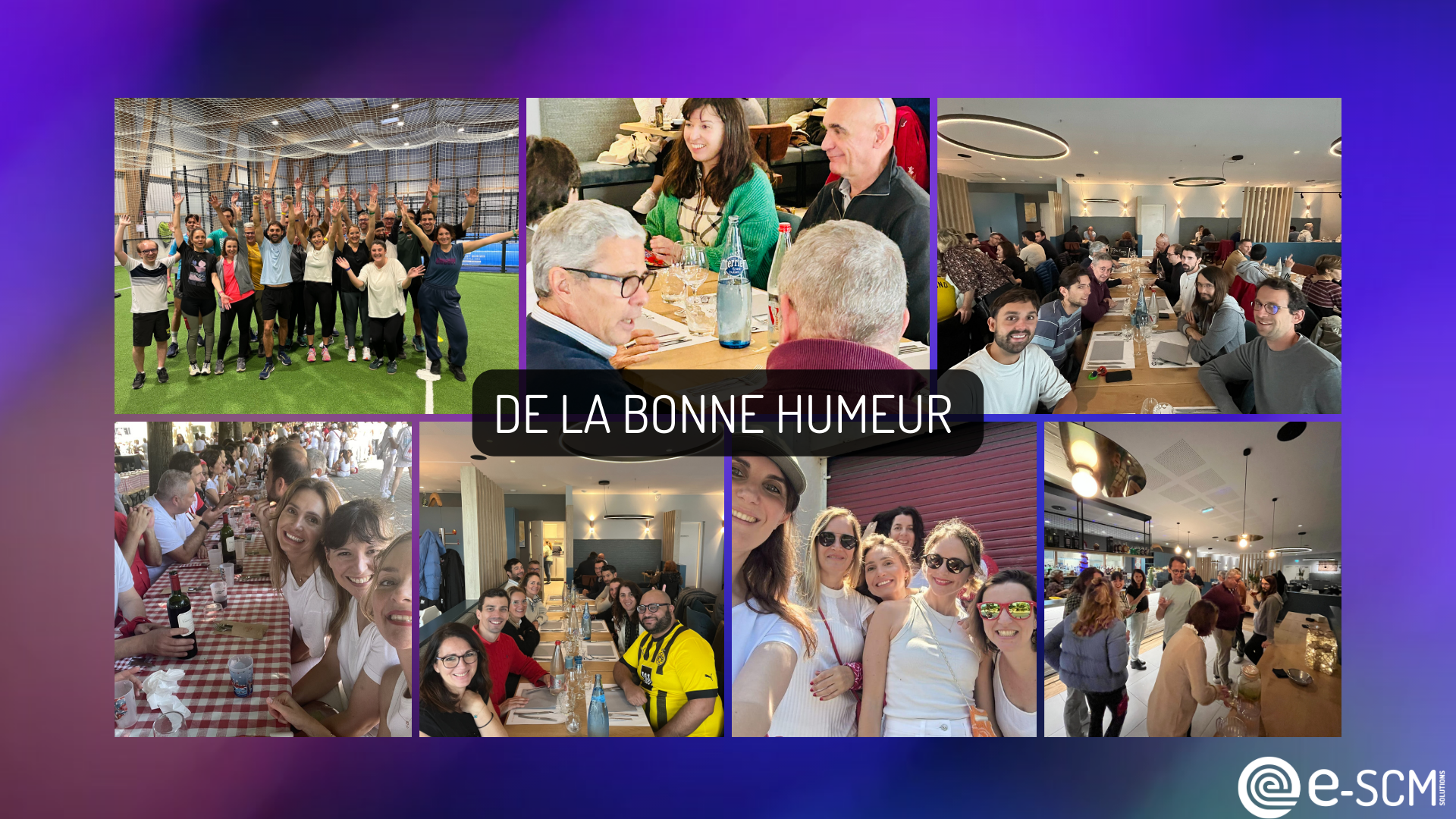 In e-SCM ci piace riunirci per condividere momenti amichevoli insieme, come il Bayonne Festival Day, la nostra recente sessione di coesione sportiva e altri momenti festivi di condivisione.