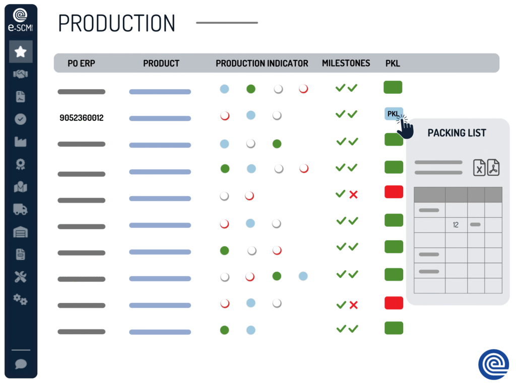 Il monitoraggio della produzione consente ai fornitori di dichiarare lo stato di avanzamento della loro produzione e ai fornitori di garantire il rispetto delle tappe fondamentali del processo.