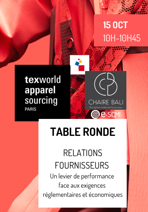 Dal 15 al 17 settembre 2025, la Texworld/Avantex Paris ha riunito a Le Bourget moda sostenibile , dei materiali tessili innovativi e delle soluzioni tecnologiche e-SCM Solutions ha partecipato a una tavola rotonda organizzata dalla Cattedra BALI .